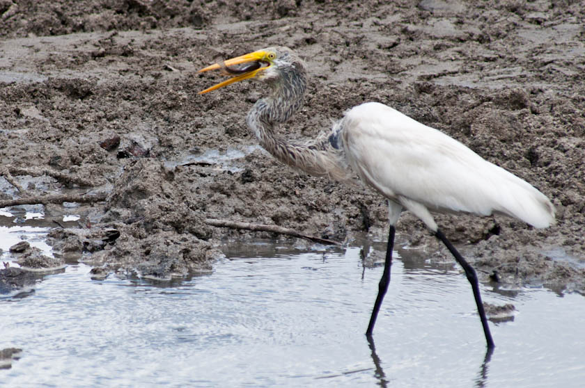 Does anyone know a local name for this bird? It’s a great egret, and this one was taking advantage of some work in the Great Salt Pond that had created small pools of water with fish trapped inside. I watched it eat a dozen within about as many minutes.