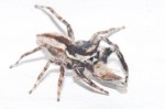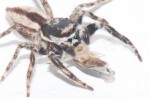 Both are predators, but the gray wall jumper clearly has the edge over the backswimmer on our balcony. Since the backswimmer is aquatic, perhaps the tables would be turned if this encounter took place underwater.